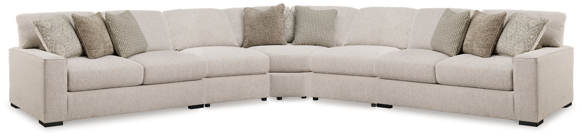 Details | Includes 5 pieces: left-arm facing loveseat, 2 armless chairs, wedge and right-arm facing loveseat, "Left-arm" and "right-arm" describe the position of the arm when you face the piece, Corner-blocked frame, Loose reversible seat and back cushions, High-density foam cushions wrapped in feather-fiber blend jacket, Accent pillows included, Pillows with feather-fiber blend, Polyester upholstery, Exposed legs with faux wood finish, Platform foundation system resists sagging 3x better than spring system after 20,000 testing cycles by providing more even support, Smooth platform foundation maintains tight, wrinkle-free look without dips or sags that can occur over time with sinuous spring foundations | |
