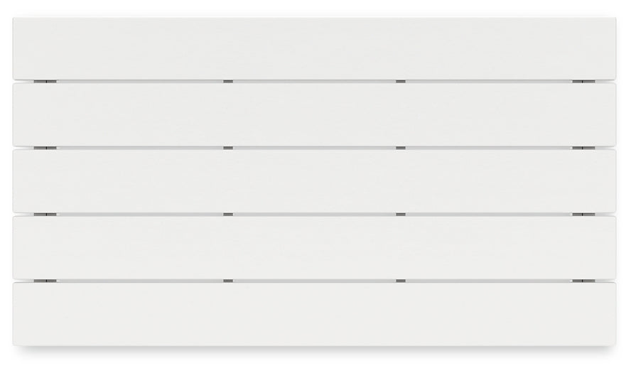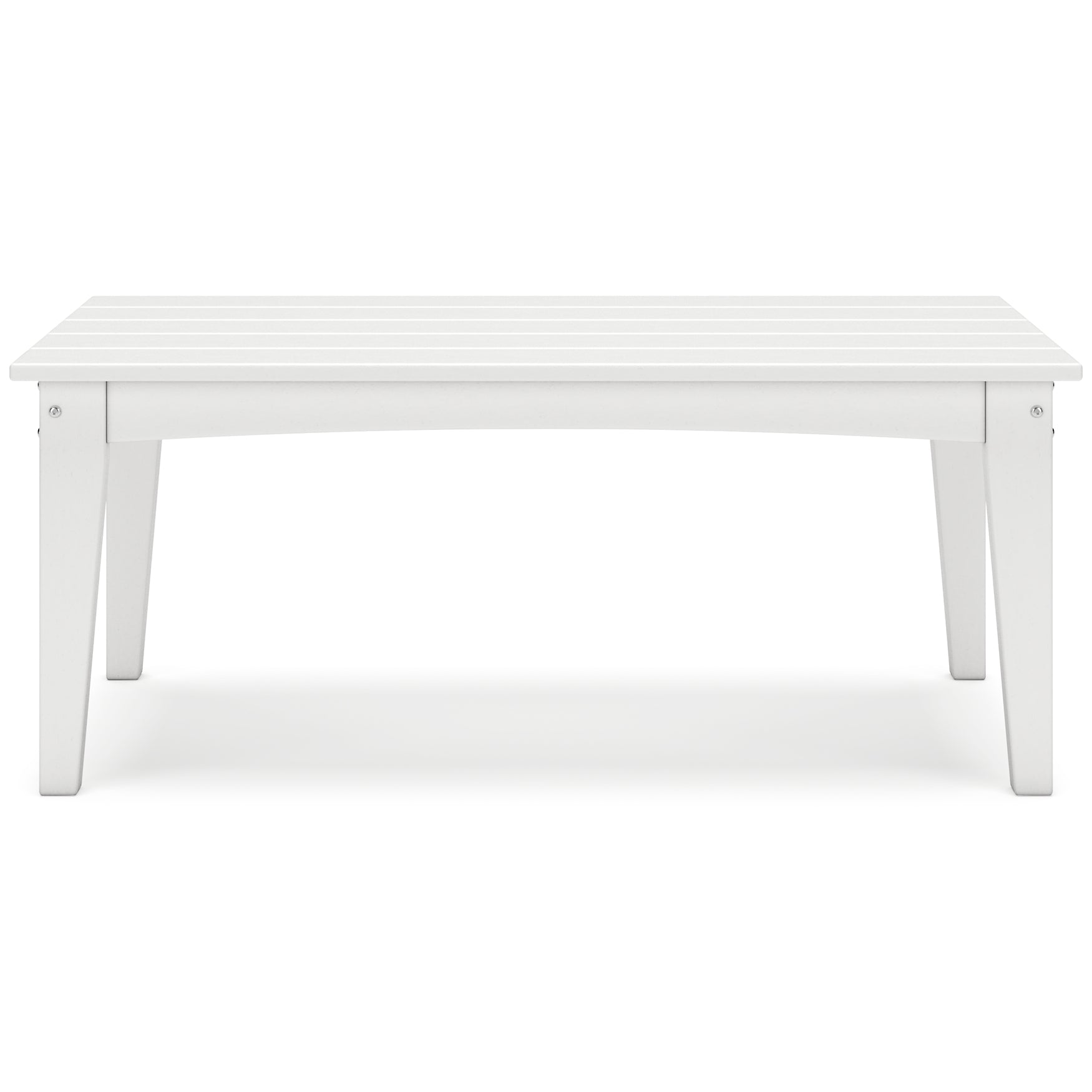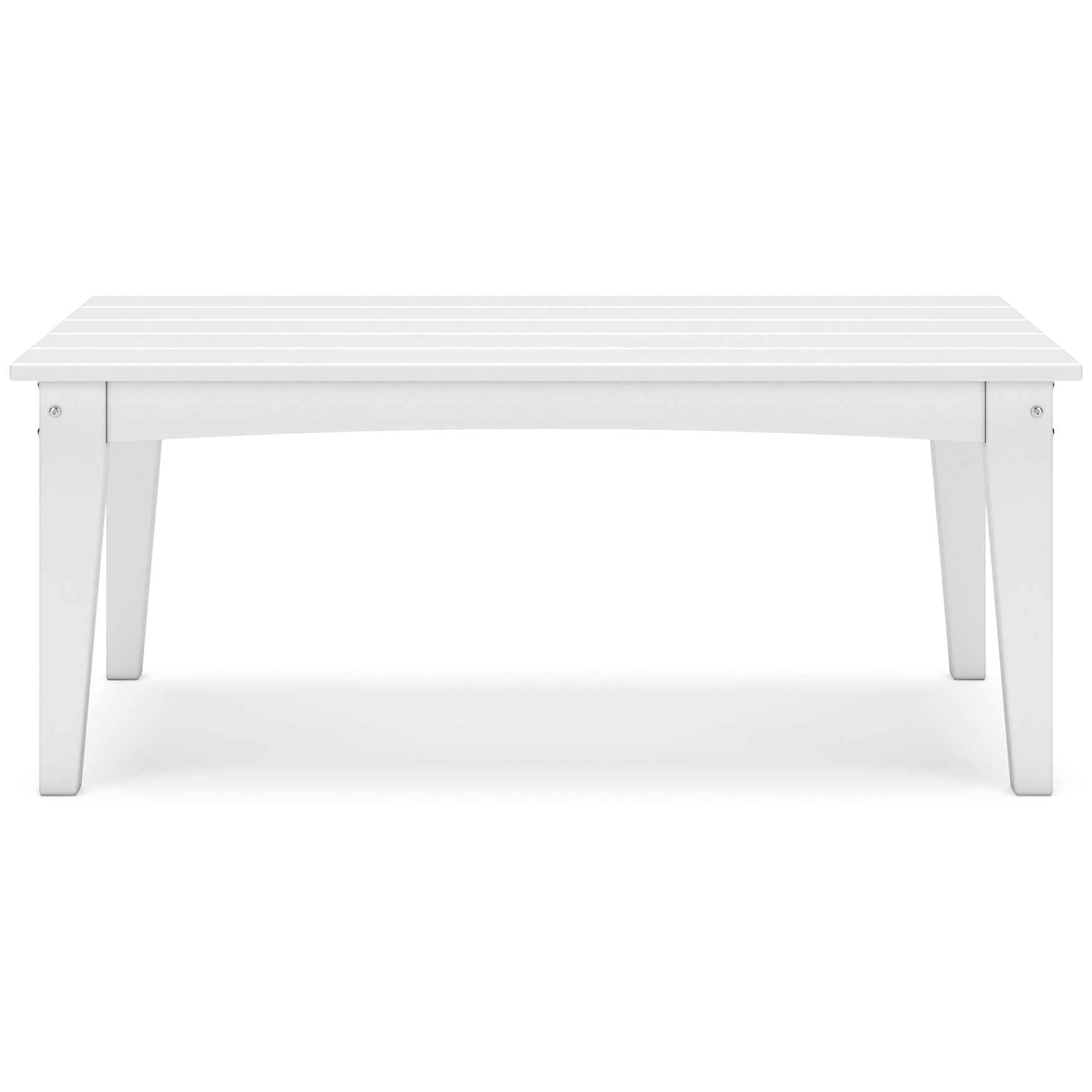 Drift into outdoor entertainment bliss with this coffee table. Dressed in a bright white for a fresh feel, it weathers sunny summer days and cozy winter nights with durable MEGA-TUFF® HDPE material. When it comes to form and function, the table's rain-shedding slatted design simply goes with the flow. Use it to hold outdoor decor, drinks or snacks.