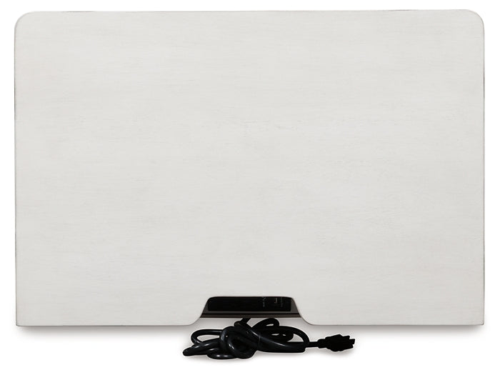 Details | Made with hardwood solids, veneers and MDF substrates, Rubbed antiqued white finish, Metal hardware with pewter-tone finish, 3 smooth-gliding drawers with fully finished interiors, French/English dovetail construction and heavy-duty ball-bearing side glides, Top drawer felt lined, 110V power supply with USB-A and USB-C charging ports, Power cord included; UL listed | |
